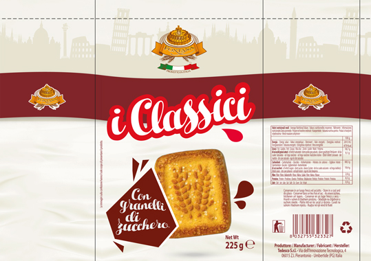 | Traceability biscuits and final packaging products manufactured according to the European law CEE number 178/2002 |